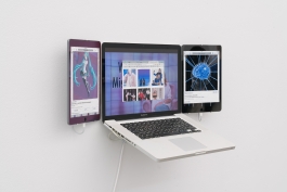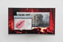 Fountain of Money explores the idea of a digital deluge. The object seems to generate a constant flow of digital currency. A large cooling tube keeps the computer processors inside from overheating, which is reflected in the design. The tube is balanced atop carved resin flames. Unlike the money shooting out indiscriminately, the object itself is carefully crafted.